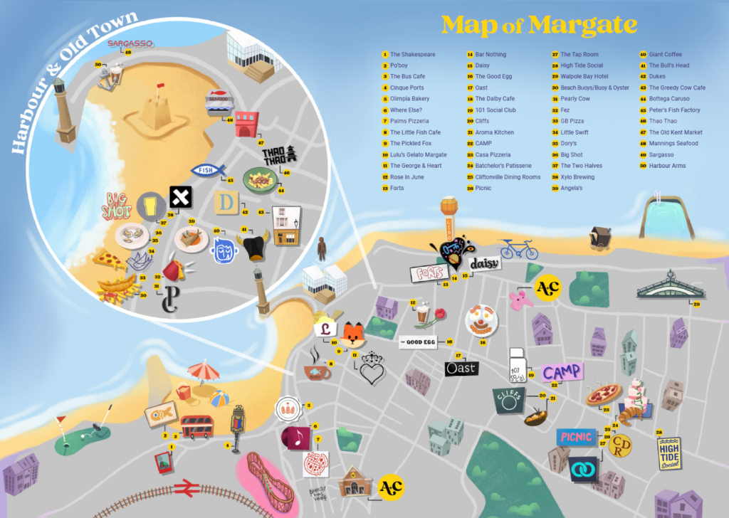 Margate is not just “on the up”. It’s well and truly up and running. Margate today is somewhere that London’s bright young things want to come and live. An unprecedented number of creatives left their beloved Hackney and Peckham for Margate’s beautiful sunsets. The crew at A+C adore Margate, and we want to give you the lowdown, so you get the most out of your visit.
